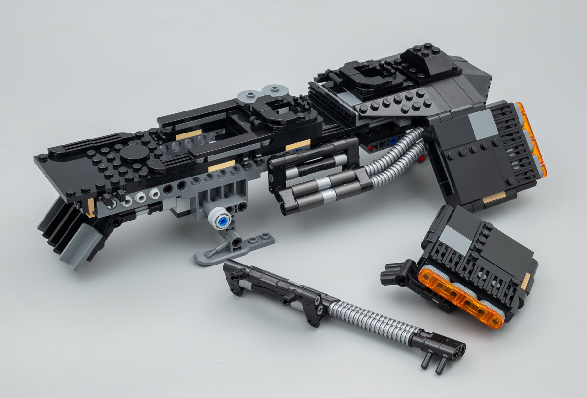 Vous ne passerez pas de longues heures à construire ce vaisseau d'une trentaine de centimètres de long, la structure interne à base de poutres Technic, la coquille (vide) qui vient se fixer dessus et les quelques sous-ensembles qui amènent un peu de détail sont assemblés très rapidement. Il n'y a pas d'aménagement intérieur mais LEGO nous fournit trois gros patins qui font office de trains d'atterrissage. Ces trois skis nous assurent "un effet de vol réaliste" d'après la description officielle du set. Dont acte.