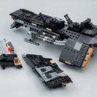 Pris séparément, je trouve que le vaisseau est assez réussi et l'échelle du modèle ne me gêne finalement pas tant que ça. Il est facilement exposable aux côté d'un Star Destroyer UCS et je n'avais de toute façon pas une envie débordante de savoir ce qu'il y aurait pu y avoir à l'intérieur. Les angles de la carlingues sont corrects, le niveau de détail est acceptable et les réacteurs arrières font le job. De toute façon, chipoter sur les raccourcis esthétiques utilisés pour le design du vaisseau avec l'échelle utilisée ici est une perte de temps.