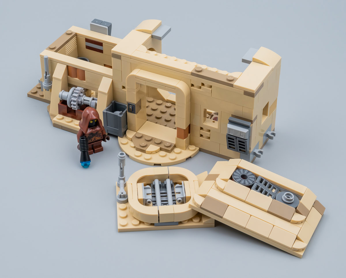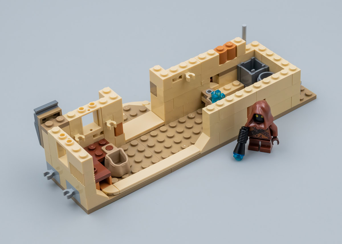 La boutique des Jawas aurait presque pu être commercialisée seule, elle est suffisamment détaillée et fonctionnelle pour offrir un peu de jouabilité et son niveau de finition est raccord avec le reste du set. elle peut être clipsée au bâtiment principal ou exposée séparément, c'est vous qui voyez.