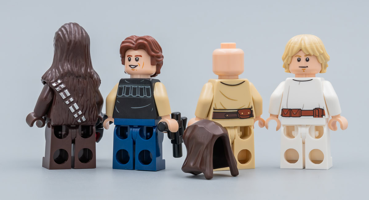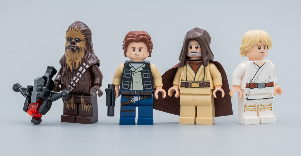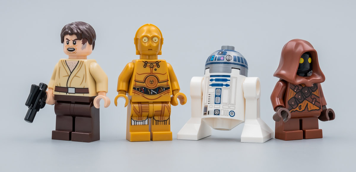 Wuher et Greedo étaient déjà livrés à l'identique dans le set 75205 Mos Eisley Cantina. Obi-Wan Kenobi était en 2019 dans le set 75246 Death Star Cannon. Les deux Sandtroopers sont identiques à l'exception de leurs épaulières respectives et on trouvait déjà cette figurine dans le set Microfighters 75228 Escape Pod vs. Dewback (2019), Luke est au catalogue LEGO depuis 2016 dans cette version et Han Solo est déjà dans le set 75159 Death Star depuis 2016.