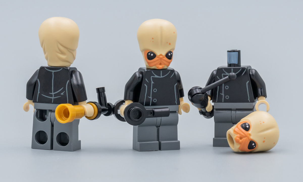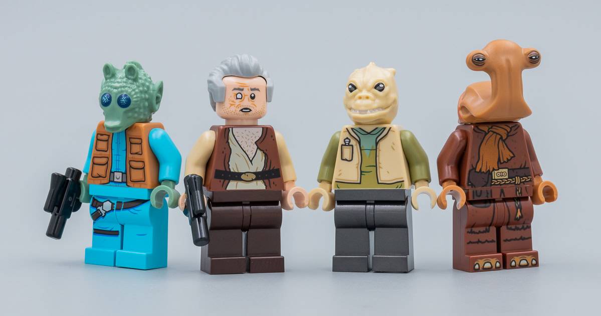 Seuls trois des sept membres du groupe Figrin D'an and the Modal Nodes sont présents dans le set, mais on ne peut pas reprocher à LEGO d'avoir sacrifié une partie de la troupe pour intégrer d'autres personnages dans la boite. Vous pourrez toujours ajouter les trois membres du groupe présents dans le set 75052 Mos Eisley Cantina et jouer au jeu des sept différences, les figurines sont identiques même si celles fournies dans cette nouvelle boite sont composées de pièces portant de nouvelles références.