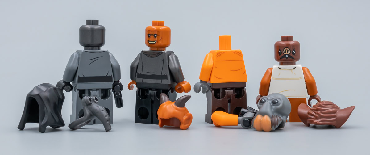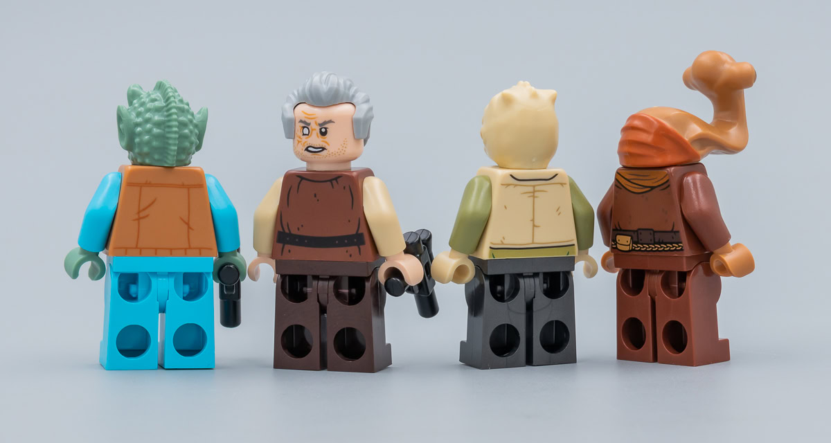 Dans l'univers Star Wars plus qu'ailleurs, on sait que le moindre personnage a tendance à devenir "culte" au fil des années même si il n'apparaît que quelques secondes à l'écran et qu'on ne sait en définitive pas grand chose à son sujet. LEGO ne s'y trompe pas et le fan service atteint ici des sommets : Ponda Baba (avec ses deux bras), Cornelius Evazan, Labria, Hrchek Kal Fas, Momaw Nadon, Kabe et Garindan viennent donc donner du piment au set et aiguiser l'appétit des collectionneurs les plus complétistes.