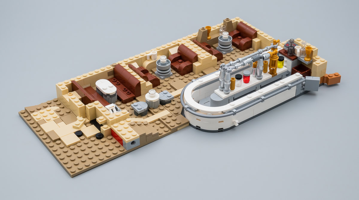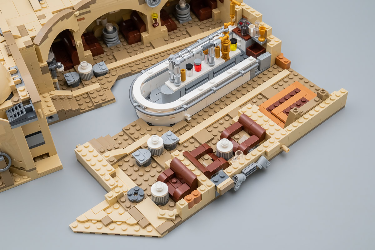 Plus qu'une interprétation inédite et rafraîchissante de la Cantina de Chalmun, que LEGO nous a déjà proposé jusqu'ici via des playsets beaucoup moins ambitieux, je pense qu'on obtient enfin ce qui se rapproche le plus d'une version qui s'affranchit des contraintes habituelles liées au positionnement tarifaire des produits LEGO et se permet donc quelques raffinements.