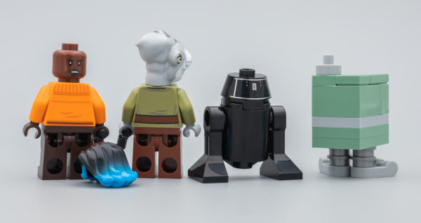 Du côté des figurines fournies, on obtient deux personnages et deux droïdes liés à l'attraction. Vi Moradi, pilote et espionne de la Résistance, est un personnage qui n'est en fait pas exclusif à l'attraction Star Wars : Rise of the Resistance, la jeune femme apparaît également dans le roman Phasma puis dans un second ouvrage intitulé Galaxy’s Edge: Black Spire. C'est d'ailleurs le seul élément du set qui a un réel rapport avec la storyline de l'univers Star Wars.