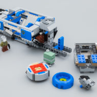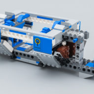 On comprend rapidement que ce vaisseau de transport ne pourra pas transporter grand chose, l'espace disponible à l'intérieur est loin d'être aussi spacieux que celui du modèle de l'attraction qui peut accueillir "en vrai" une bonne trentaine de visiteurs. Ici, on pourra y glisser la caisse d'armes livrée dans la boite et éventuellement y ranger les quelques minifigs fournies. Si l'espace intérieur est assez restreint, il reste toutefois facilement accessible via les panneaux mobiles placés sur les flancs et le couvercle amovible placé sur la partie supérieure de la carlingue.