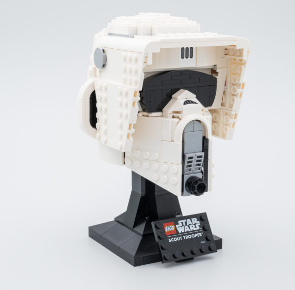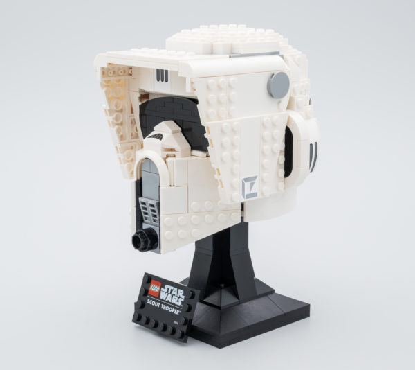 Ce second modèle propose un inventaire beaucoup plus réduit que celui du set 75304 Darth Vader Helmet avec ses 834 pièces et son prix public fixé à 69.99 €. Pourtant, les deux constructions sont à la même échelle, elles utilisent le même présentoir et elles affichent des mensurations très proches.