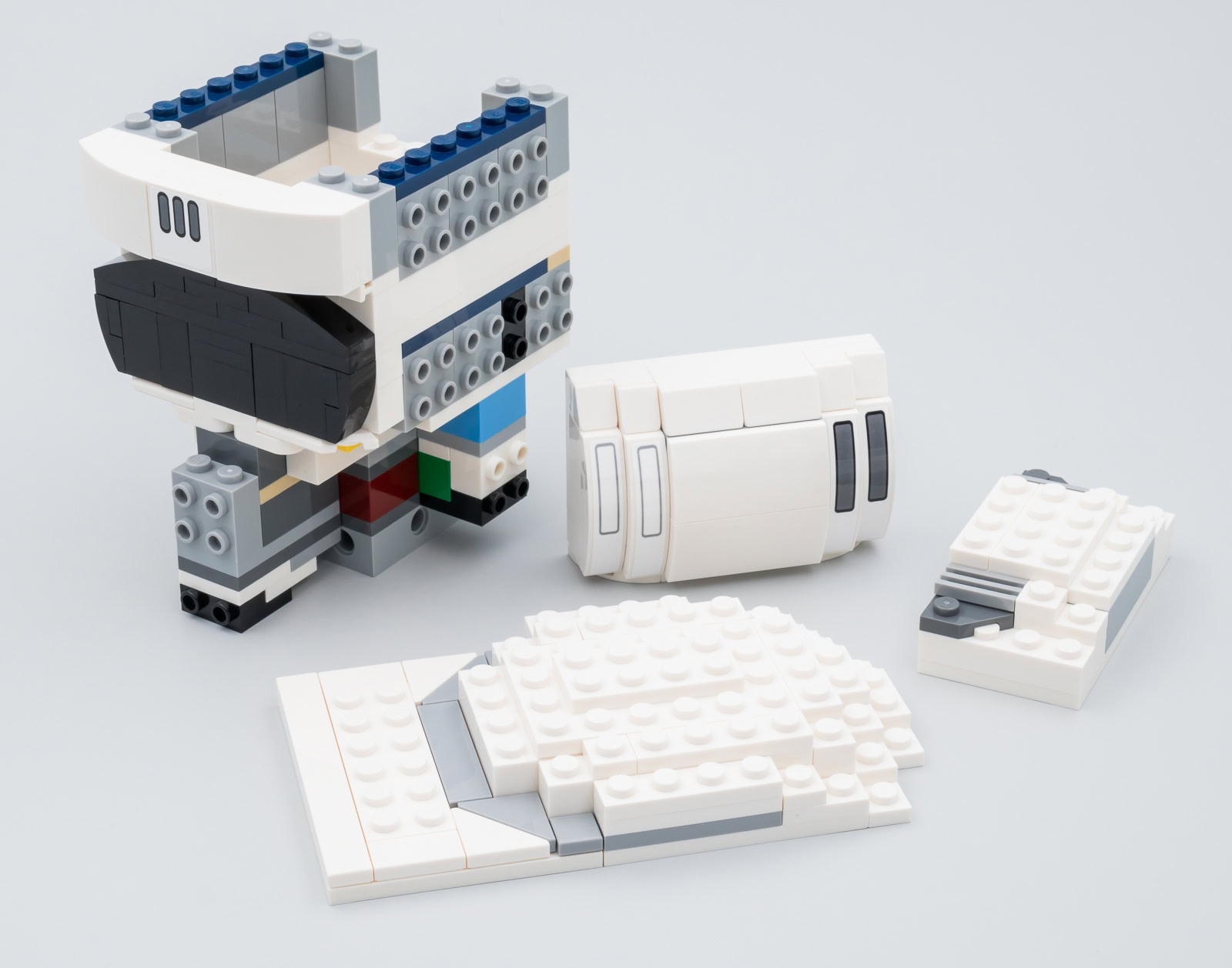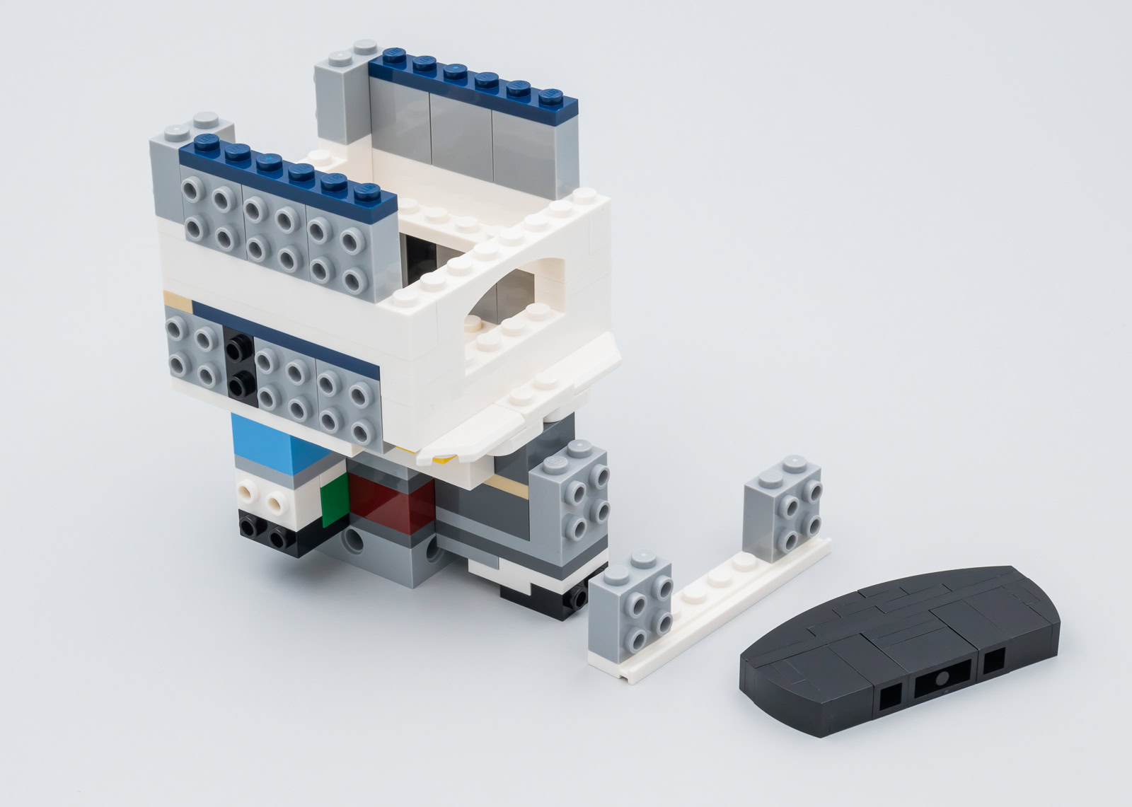La phase d'assemblage n'est pas inintéressante même si l'inventaire réduit raccourcit sensiblement la durée de "l'expérience". Il reste quelques techniques intéressantes au niveau du nez du casque ou de la fixation du tour de cou qui divertiront un peu les fans. Le reste ressemble un peu à l'assemblage d'une grosse figurine BrickHeadz.