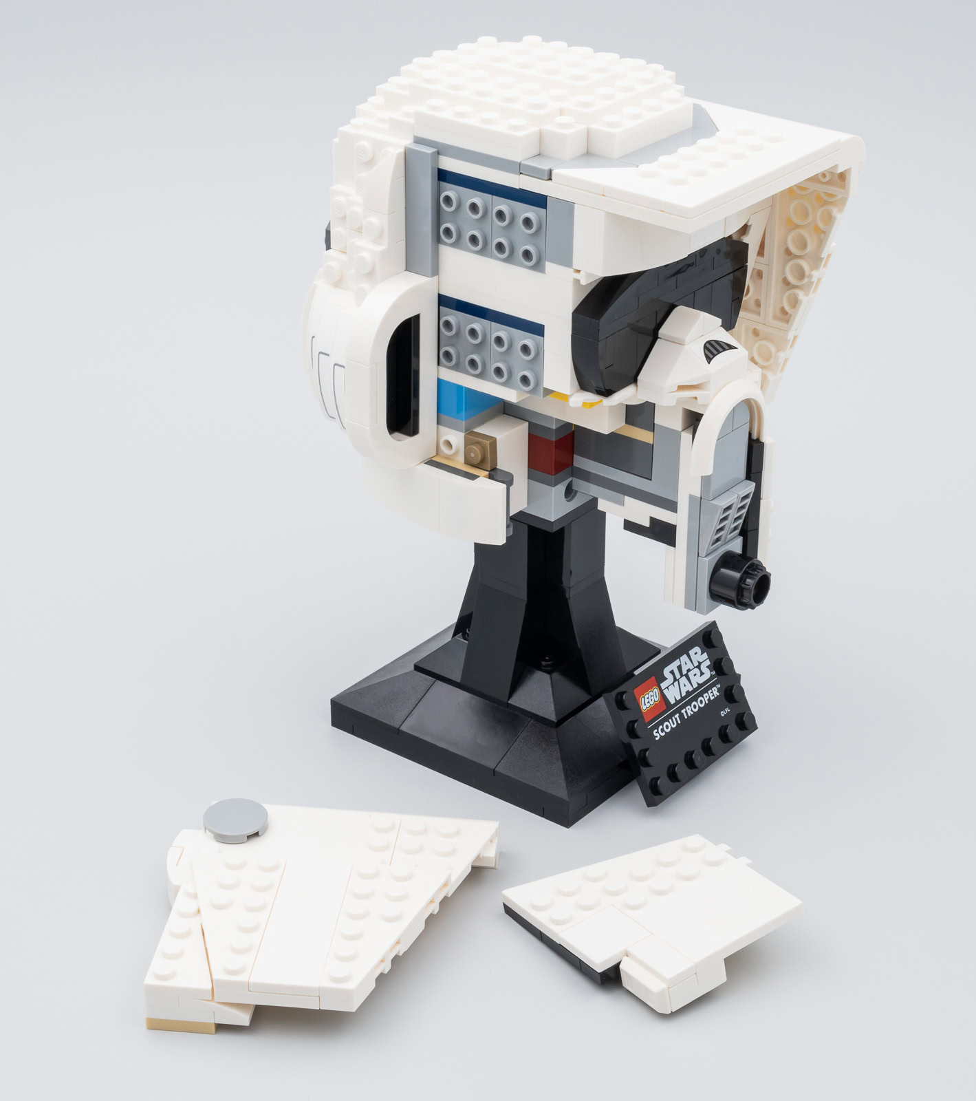 En marge des considérations d'ordre esthétique, c'est dans la conception de ces deux casques que résident les principales différences : Celui du Scout Trooper est vide à l'intérieur, on assemble ici une simple "coque" qui va recevoir les différents habillages extérieurs, et l'inventaire de ce produit contient beaucoup moins de petits éléments que celui du casque de Darth Vader.
