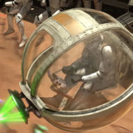 Vous l'aurez remarqué, les deux bulles mobiles en forme de mini Death Star avec leur poste de tir en principe occupé par un Clone Trooper ne sont pas parfaitement rondes. L'ajout d'une série d'éléments permettant de fixer les bulles sur leurs supports respectifs et l'intégration d'une couronne de pièces entre les deux demi-sphères déforment un peu ces deux constructions. Je salue tout de même l'effort de tampographie sur les huit demi-sphères fournies dans cette boite, même si j'imagine que LEGO n'aurait pas osé nous imposer des stickers à coller sur ces éléments.