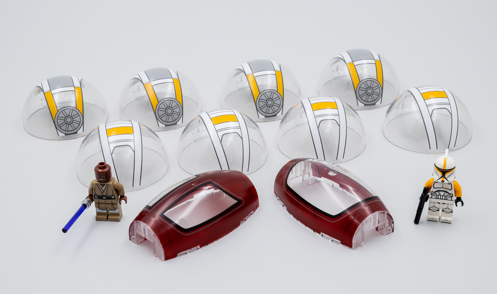 Les deux minifigs fournies sont de simples éléments de décoration du support de présentation, et même si elles sont inédites sous cette forme, il faut donc se contenter de Mace Windu avec ses traces de poussière sur le torse et d'un Clone Trooper Commander Phase I un peu plus détaillé que celui du set 75019 AT-TE (2013) mais dispensable.