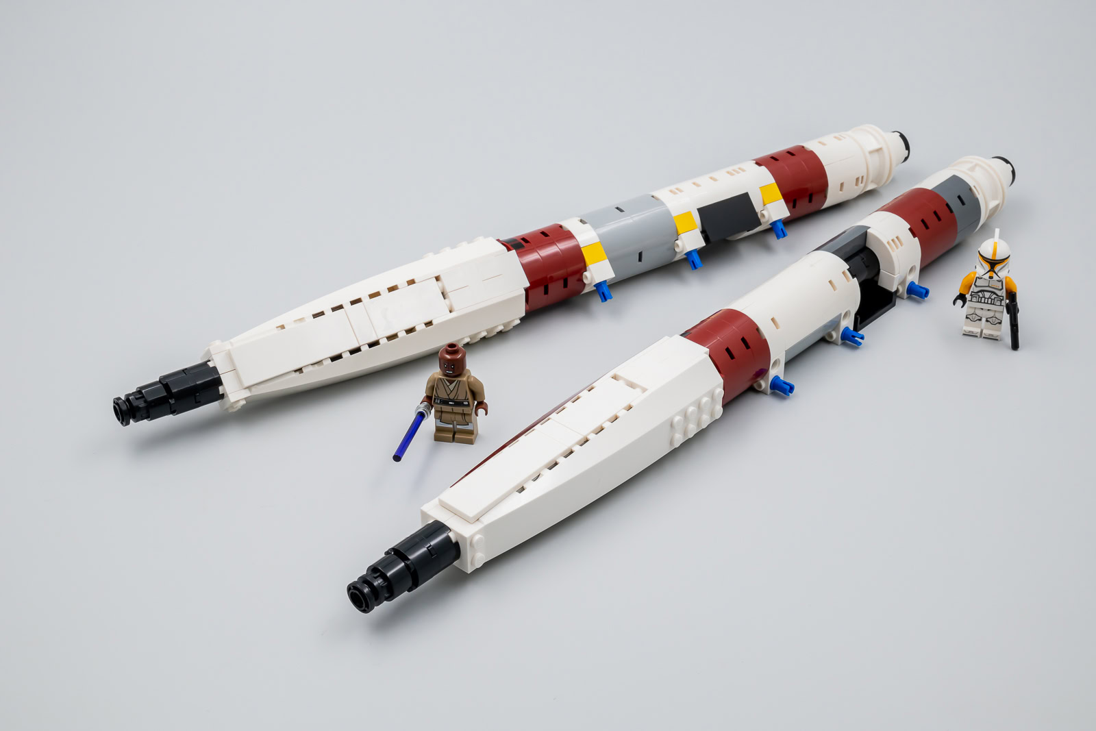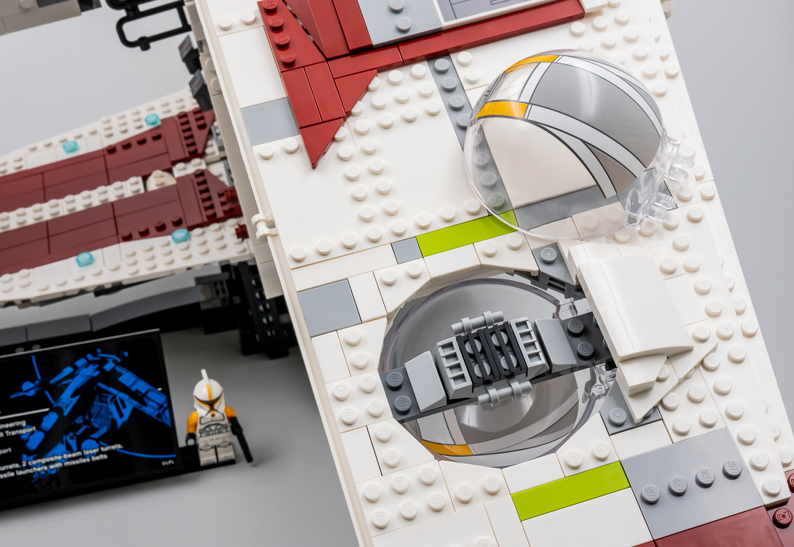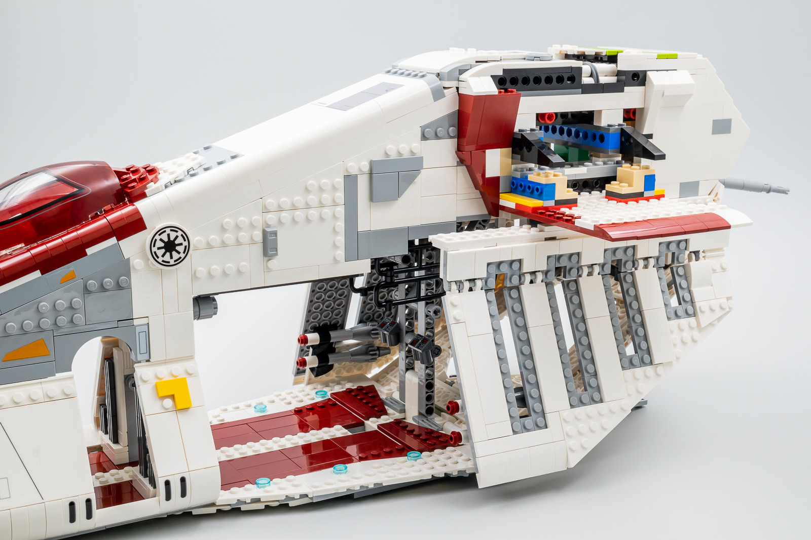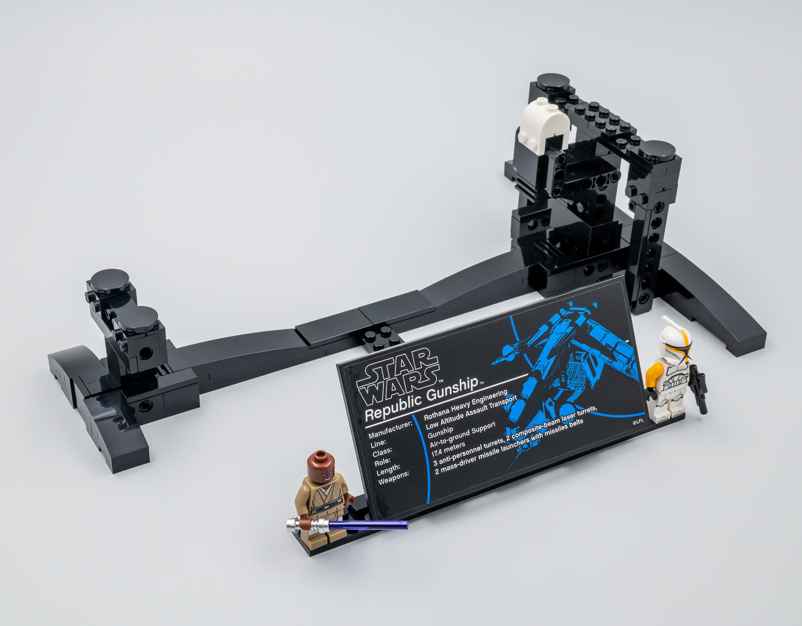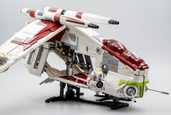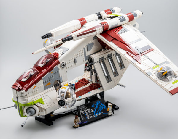 Ceci étant dit, cette version UCS d'un vaisseau qui a déjà été décliné par LEGO au format system en 2002 (7163 Republic Gunship), en 2008 (7676 Republic Attack Gunship) puis en 2013 (75021 Republic Gunship) était-elle vraiment indispensable ? À en croire les fans qui ont massivement voté pour ce vaisseau, c'est le cas. Je pense pourtant que nombre d'entre eux se voyaient déjà disposer d'une flopée de Clones ou de Cody en armure Phase 2, ils en seront pour leurs frais car il s'agit ici d'une imposante maquette à exposer qui n'est accompagnée que de deux minifigs.