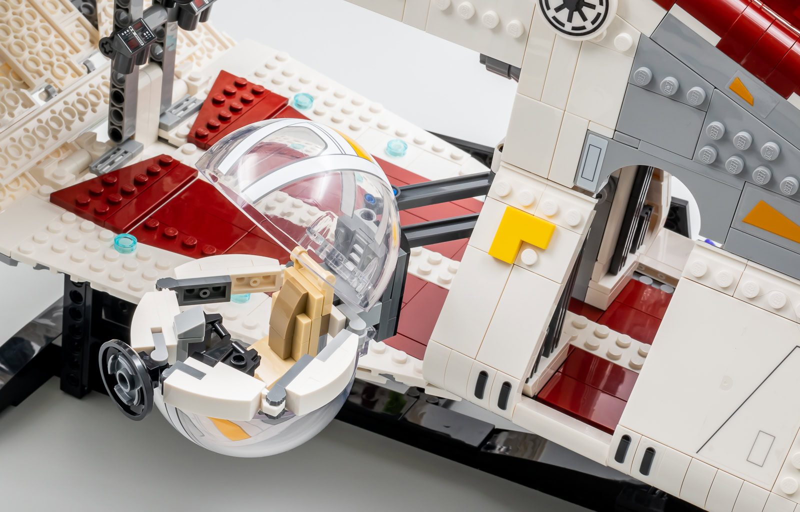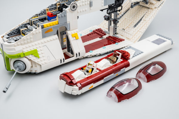 J'imagine que certains de ceux qui avaient voté pour ce set lors de la consultation initiale s'attendaient plutôt à un vaisseau moins gros et moins cher rempli de Clones Troopers, le set UCS 75098 Assault on Hoth ayant officiellement ouvert la porte à ce type de playset en 2016. Il n'en sera rien, il faudra débourser 349.99 € pour cette maquette d'exposition globalement réussie et se contenter des deux minifigs fournies.