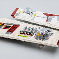 Dès le 1er août prochain, ce sera à chacun d'évaluer si ce vaisseau mérite vraiment l'investissement demandé par LEGO. La maquette est imposante, elle est relativement détaillée même si le sujet impose beaucoup de vide interne avec une carlingue autour et on obtient un imposant produit d'exposition de 68 cm de long sur 74 cm de large qu'il va falloir arriver à caser sur une étagère.