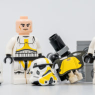 La minifig est bien exécutée, elle est conforme à son apparence à l'écran sauf peut-être pour les motifs jaunes qui à mon avis devraient être plus foncés. Les motifs tampographiés dans le dos de la figurine peinent à incarner le sac chargé de munitions transporté par le soldat mais LEGO compense en fournissant quelques pièces et deux manches de sabre blancs qui font l'affaire.