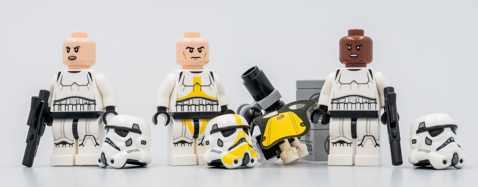 Les deux Stormtroopers sont constitués d'éléments disponibles depuis plusieurs années chez LEGO, le torse et les jambes depuis 2014, le casque depuis 2019, et le fabricant ajoute ici un peu de diversité avec deux têtes inédites. Leur présence ne me semble pas indispensable dans cette boite mais tout le monde sait qu'un collectionneur n'a jamais assez de Stormtroopers dans ses tiroirs.
