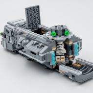 Deux figurines peuvent être installées du bout des doigts à l'intérieur de l'engin via la trappe placée sur le toit, le pilote accède facilement aux commandes grâce aux deux panneaux mobiles placés à l'avant, un tireur peut s'installer à l'arrière et Greef Karga peut se tenir debout sur le toit.