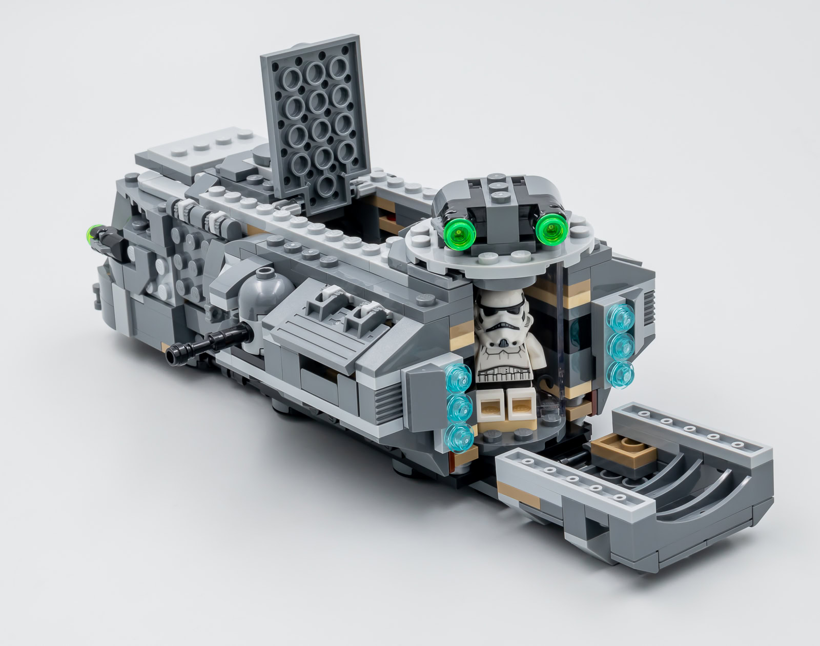 Le transporteur a un peu rétréci lors de sa conversion au format LEGO mais il conserve globalement l'esthétique du véhicule vu dans la série. Tout y est ou presque et le designer n'a pas pour autant sacrifié la jouabilité et l'espace disponible à l'intérieur.