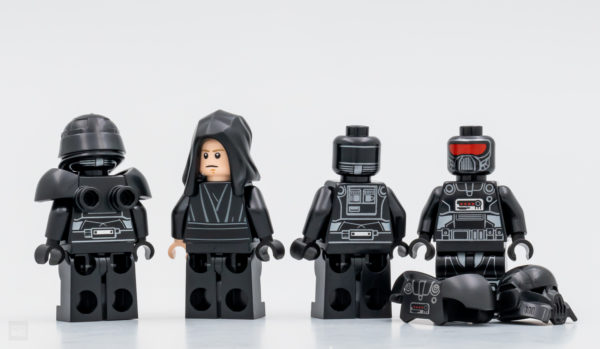 Les trois Dark Troopers livrés ici sont identiques à celui du set 75315 Imperial Light Cruiser et c'est logique. Les vendeurs du marché secondaire ont d'ailleurs rapidement réagi dès l'annonce de ce produit en baissant le tarif pratiqué jusqu'ici pour cette minifig au demeurant très réussie. LEGO corrige le tir ici en nous livrant des blasters noirs plus à-propos que la version grise fournie dans l'autre set. Vous aurez le choix d'exposer ces minifigs avec ou sans leurs épaulettes, la tampographie du torse est quasiment identique à celle de l'accessoire qui en recouvre une partie.