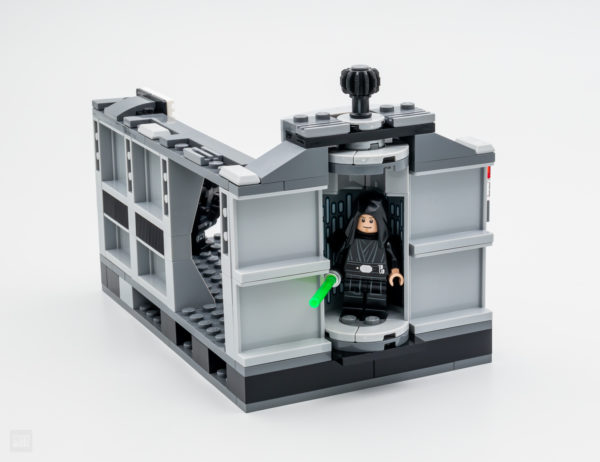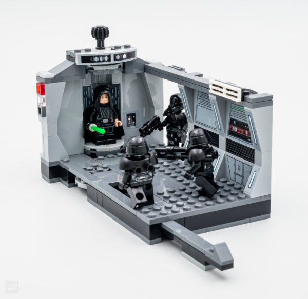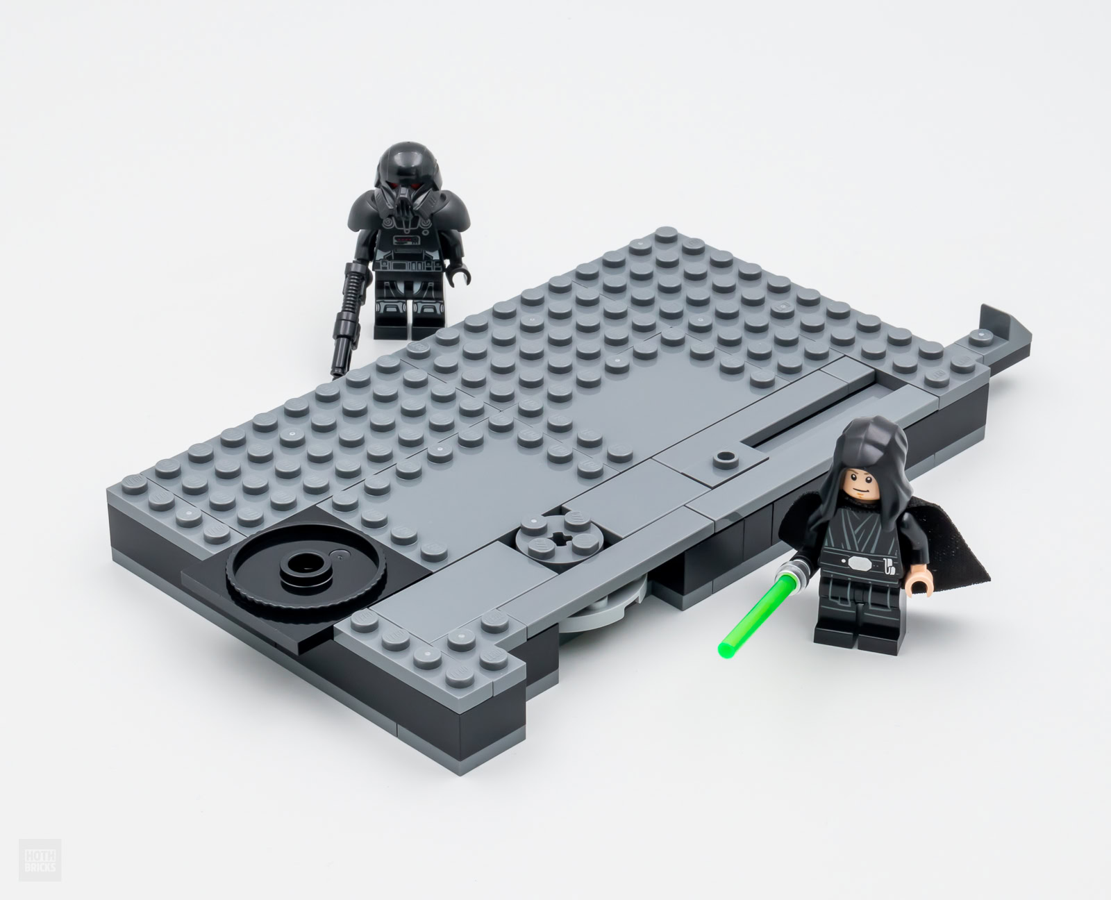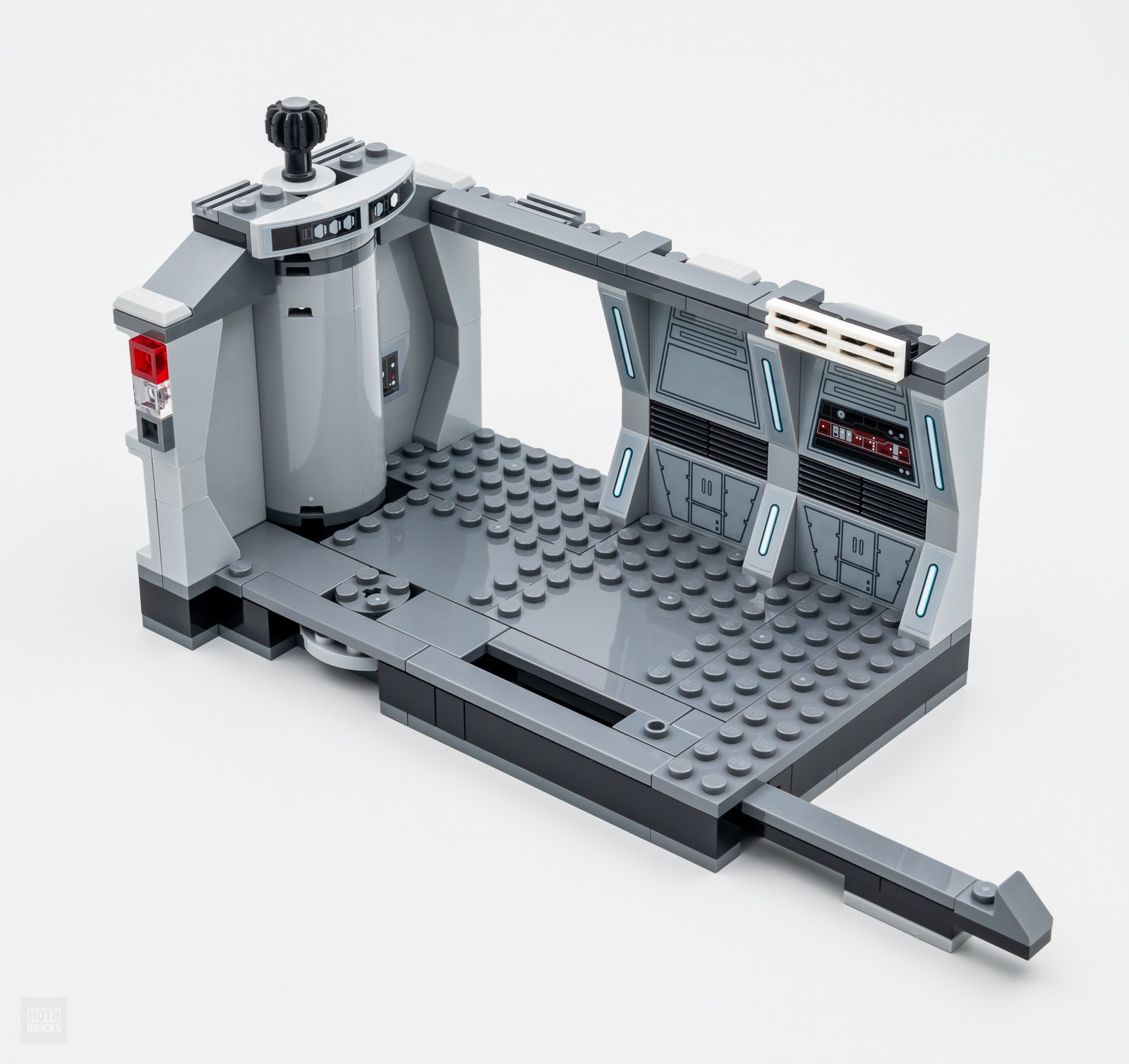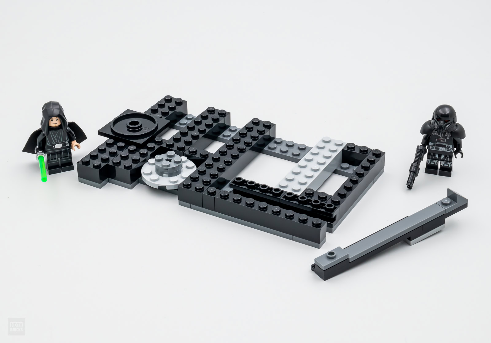 Avec 166 pièces au compteur, la construction proposée est forcément sommaire, même si l'utilisation de gros éléments permet de lui donner un peu de volume. Il s'agit ici de reproduire la scène de l'arrivée de Luke Skywalker à bord du croiseur de Moff Gideon dans le dernier épisode de la seconde saison de la série The Mandalorian. La scène a fait son petit effet à l'écran, LEGO ne pouvait pas passer à côté du potentiel commercial d'une reproduction même symbolique de la chose.