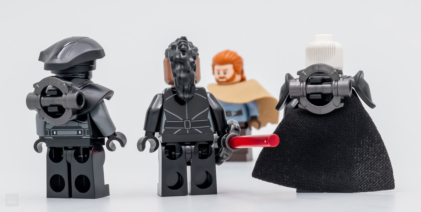 Les versions livrées dans cette boite sont logiquement basées sur la série Obi-Wan Kenobi et le graphiste a fait ses devoirs. Les tampographies sont franchement fidèles aux tenues vues à l'écran et le trio de chasseurs de Jedi est à mon avis très réussi. Deux de ces minifigs sont équipées de la même paire de jambes et Reva n'a droit qu'à des jambes neutres, ça sent un peu les économies mais on fera avec.