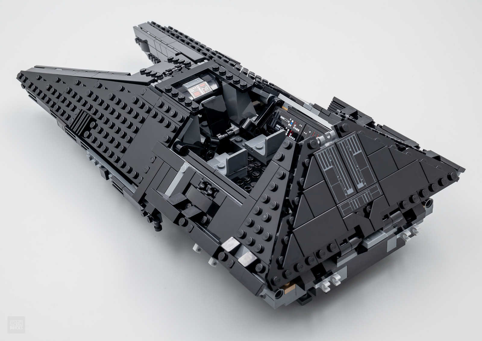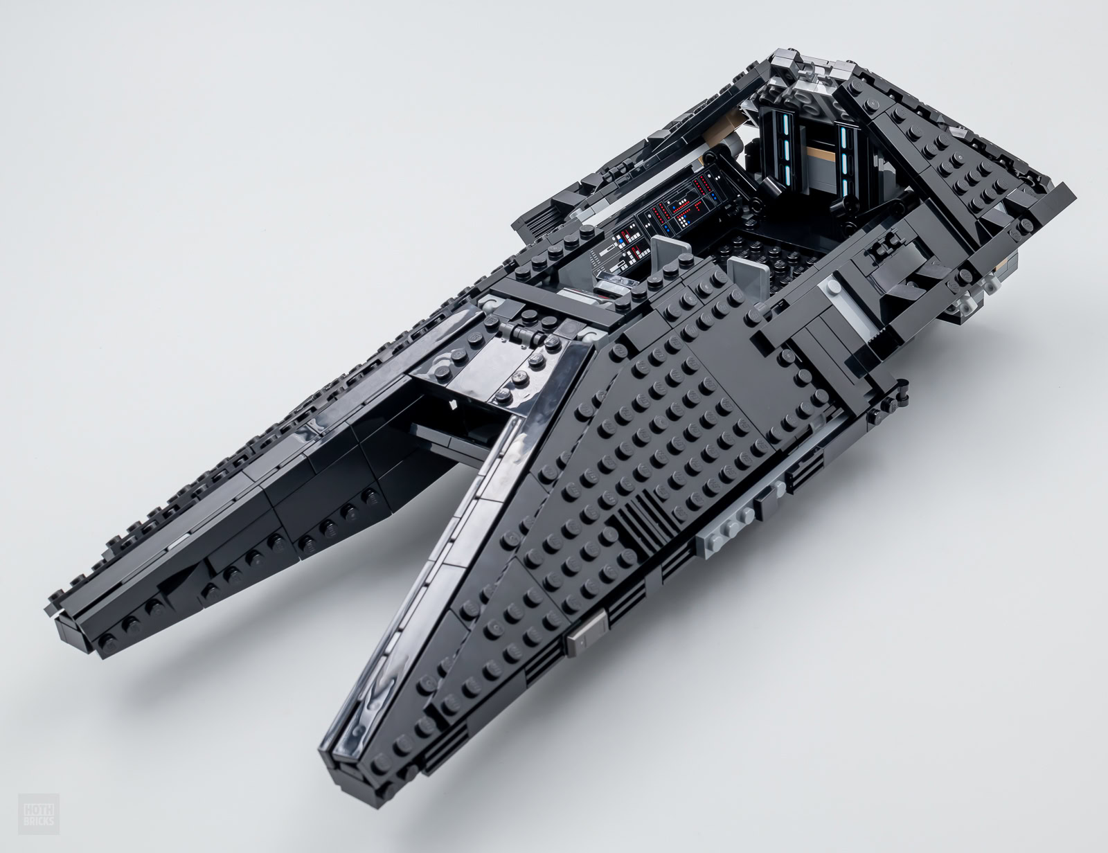 Il s'agit donc ici d'assembler le vaisseau utilisé par les inquisiteurs de l'Empire et le premier épisode de la série s'ouvre sur l'arrivée de ces chasseurs de Jedis énervés sur Tatooine. Je ne vais pas vous faire un couplet interminable sur la version LEGO du vaisseau, c'est un jouet pour enfants qui privilégie évidemment la jouabilité à la finition. L'ensemble est plutôt bien conçu, l'esthétique du vaisseau de référence est là et les angles sont bien gérés avec quelques techniques bien senties qui devraient satisfaire les fans plus âgés toujours soucieux de découvrir quelques sous-assemblages ingénieux.