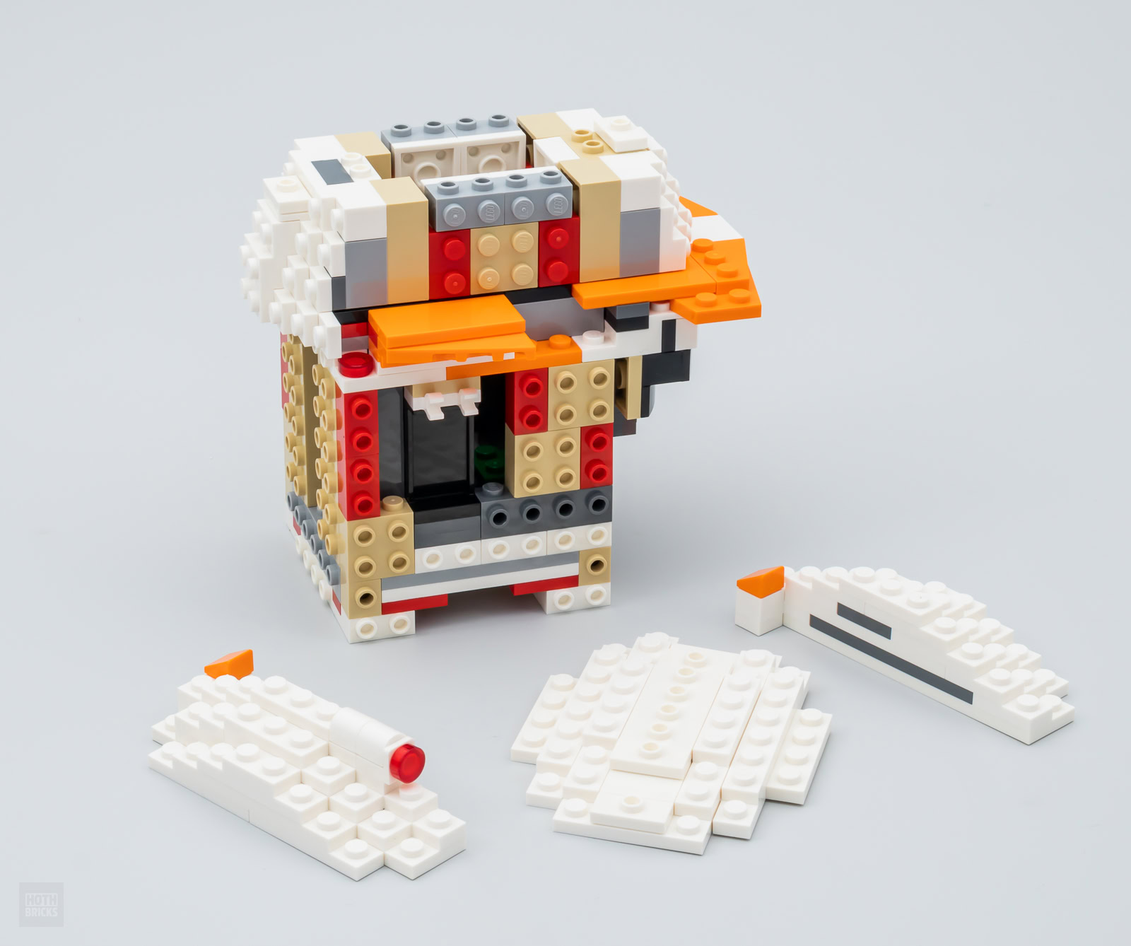 C'est d'ailleurs surtout au niveau de la bordure inférieure du casque que les choses se corsent un peu avec des empilements de pièces qui peinent à incarner les courbes et les angles de l'objet. Le haut du produit est plus fidèle même si on y retrouve l'inévitable dôme à base d'escaliers et de tenons apparents qu'on peut au choix considérer comme la signature de cette gamme ou comme un raccourci esthétique qui manque de finition.