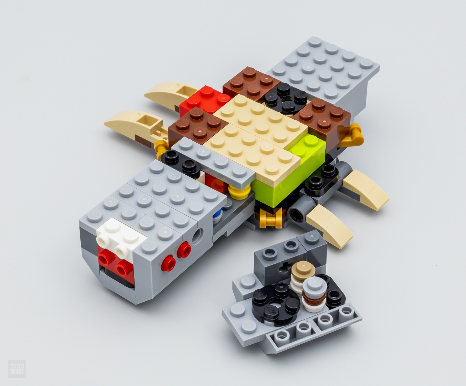 On peut d'ailleurs discuter de l'absence d'une minifig dans cette boite, je pense à titre personnel que le set se suffit à lui-même et qu'il n'était pas nécessaire d'y ajouter un personnage. On obtient ici une jolie maquette d'exposition qui existe sans devoir être accompagnée par exemple de Han Solo et qui n'aurait à mon avis finalement été plutôt assimilée à un Microfighter de luxe si LEGO y avait ajouté une figurine.