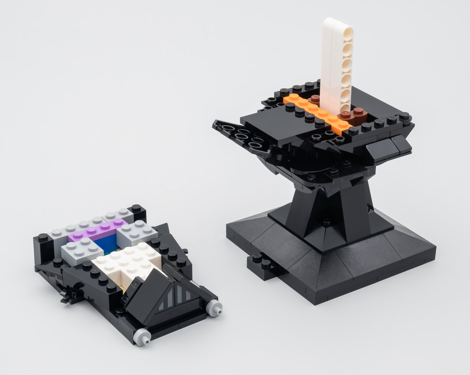 Certains détails du produit reposent sur les effets d'ombres qui comblent un peu les quelques espaces vides, à la manière de ce qui est proposé sur le casque de Tony Stark dans le set LEGO Marvel 76165 Iron Man Helmet (480 pièces - 59.99 €), mais sans aller aussi loin que les joues totalement vides. Ce casque étant totalement noir à quelques détails près, ces espaces vides se fondent facilement dans la structure et l'effet restera contenu sauf en auscultant le modèle de très prés.