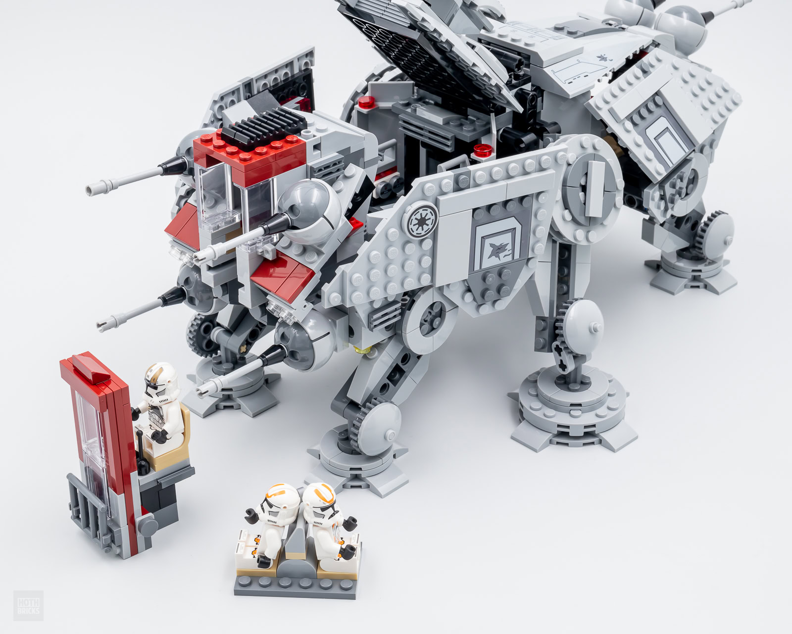 Il n'y a pas grand chose à l'intérieur de cet AT-TE, mais il reste suffisamment de place avec neuf emplacements au total pour y installer les cinq minifigs fournies, les collectionneurs pourront même compléter l'escouade avec quelques Clones issus du set 75036 Utapau Troopers commercialisé en 2014, même si les figurines ne seront pas coordonnées entre elles.