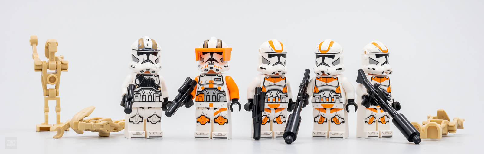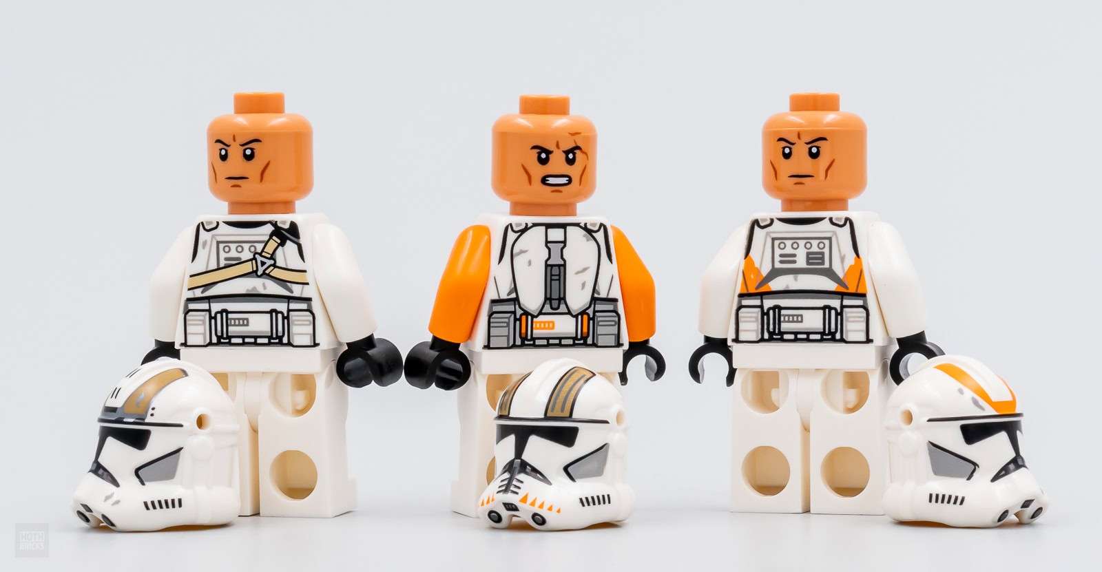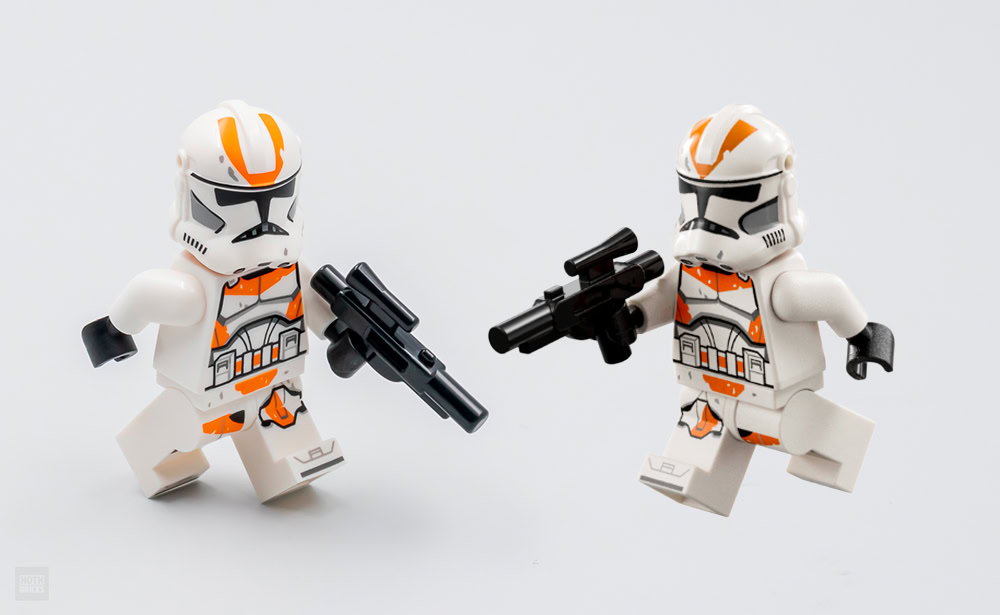 Les tampographies sont très abouties avec un vrai souci du détail, le Clone Gunner déjà vu en 2017 dans le set 75182 Republic Fighter Tank profite ici de quelques détails supplémentaires sur le torse et les jambes, les Clones Troopers perdent leurs bras oranges et leurs hanches noires mais gagnent un peu de relief sur le torse et cette nouvelle version de Cody vraiment détaillée et fidèle à la tenue vue à l'écran devrait facilement trouver son public chez les fans.
