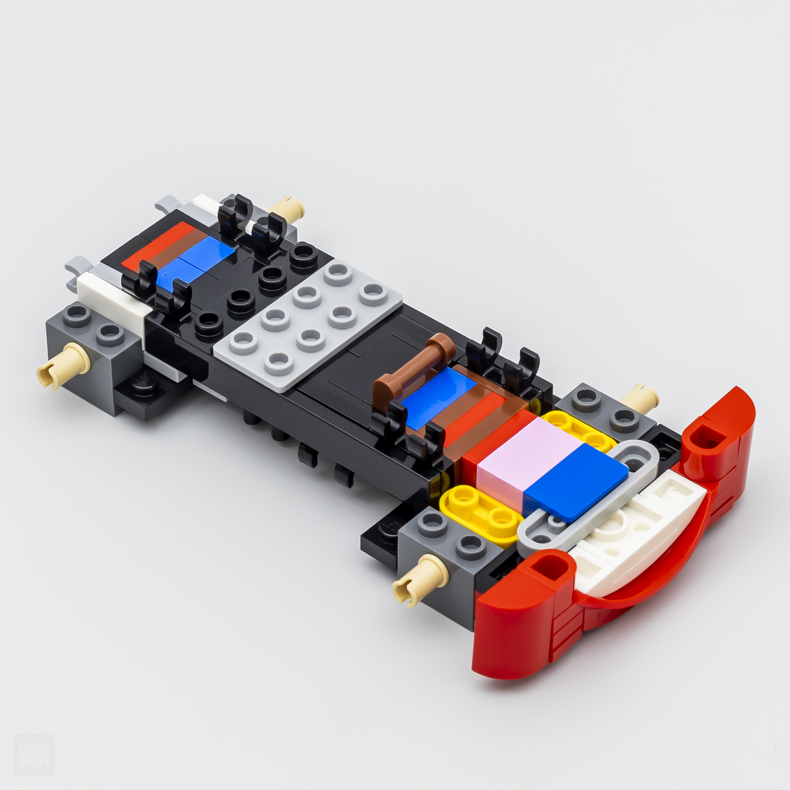 Une fois n'est pas coutume, le châssis du véhicule fait ici l'impasse sur la méta-pièce habituellement utilisée dans cette gamme et il faut assembler une structure spécifique qui procure quelques minutes de plaisir en plus. C'est toujours ça de pris sachant que les 270 pièces du set n'offrent pas de quoi y passer de longues heures. On soulignera également que le véhicule profite d'une finition correcte sous le châssis, c'est un détail appréciable.