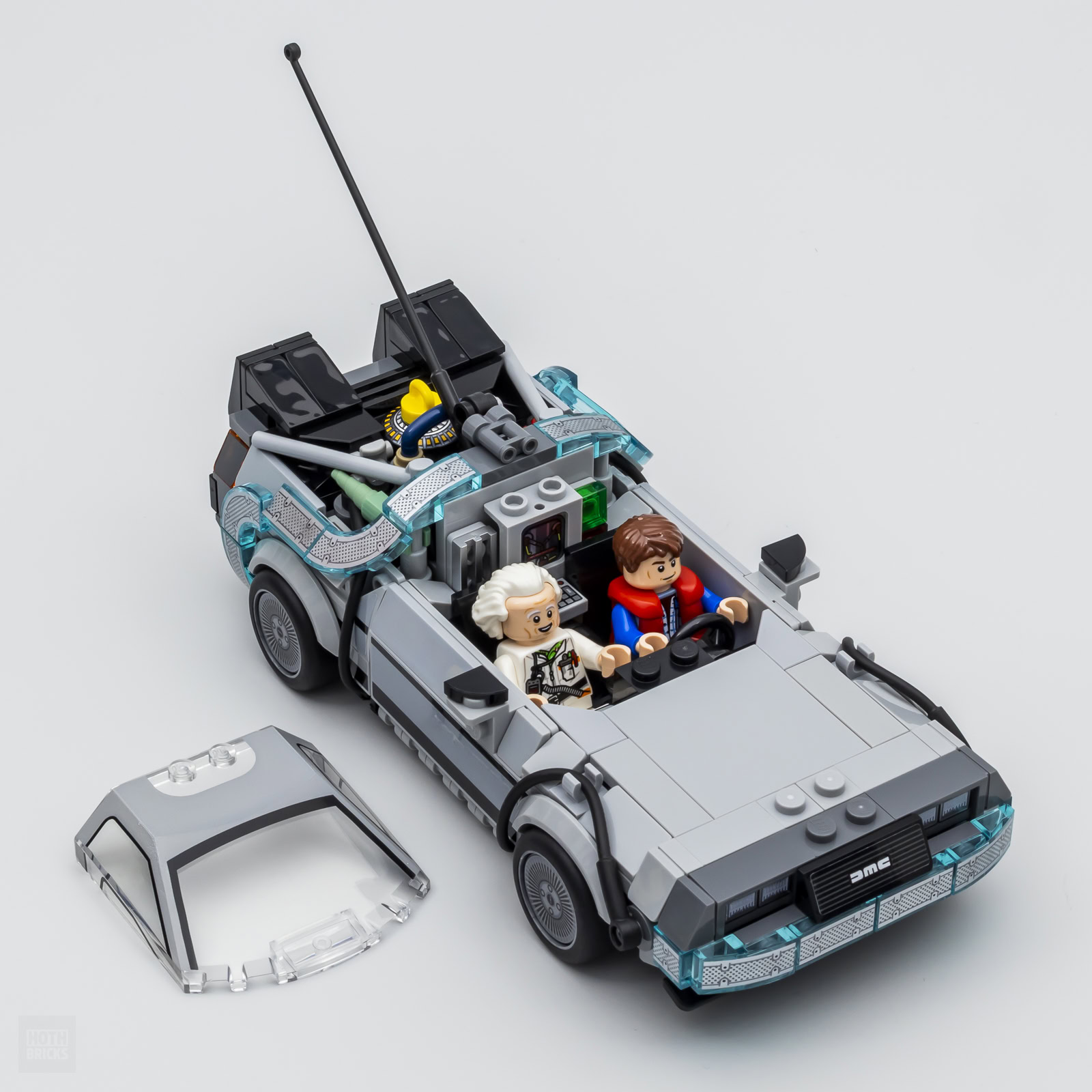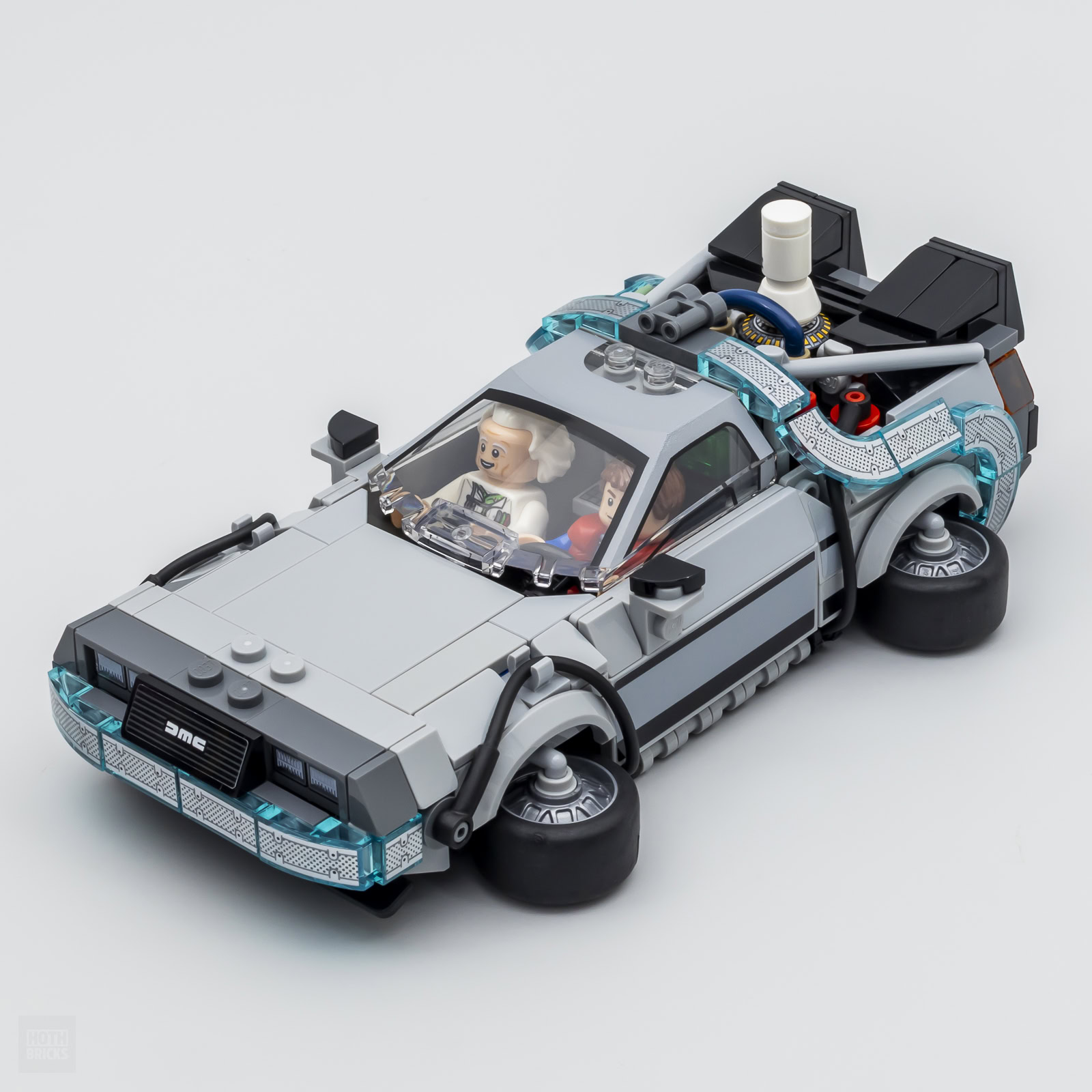 La bascule entre les deux versions se fait très tard durant la phase d'assemblage de la partie commune du modèle. Le changement de version nécessite en effet seulement trois étapes : changement de plaque d'immatriculation, installation de Mr Fusion à l'arrière et mise à l'horizontale des quatre roues à l'aide des pièces fournies.