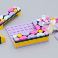 On peut d'ailleurs diviser le contenu du set en deux parties distinctes avec d'un côté le cadre qui sert de support à l'œuvre et de l'autre les éléments qui constituent la partie créative du produit. Le cadre blanc en 12x16 avec son pied qui permet d'exposer le portrait sur le coin d'un bureau ou d'une étagère est composé de 29 pièces. Il reste donc 86 éléments dans cette boite pour reproduire le visage de Batman par superpositions successives de blocs de pièces qui lui donneront un peu de relief.