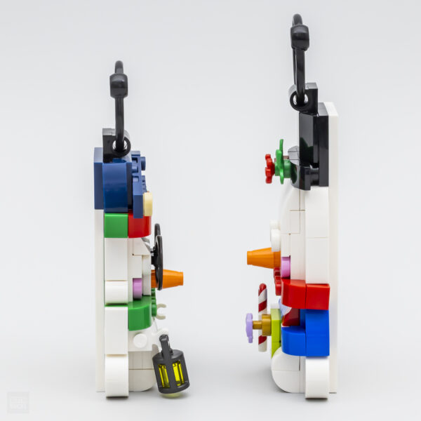 Il en faut pour tous les budgets et cette petite boite de 168 pièces au prix contenu permettra à tous ceux qui ne veulent pas trop investir dans les produits festifs vendus plus chers de s'offrir tout de même quelques décorations. Au programme pour cette fois, deux bonhommes de neige au look plutôt original qui feront leur petit effet sur le sapin. Le tout est évidemment très rapidement assemblé avec un inventaire limité et LEGO ne fournit malheureusement qu'un seul livret d'instructions regroupant les deux modèles. Deux livrets indépendants auraient été les bienvenus pour garantir aux plus jeunes la possibilité de partager ce moment de construction.