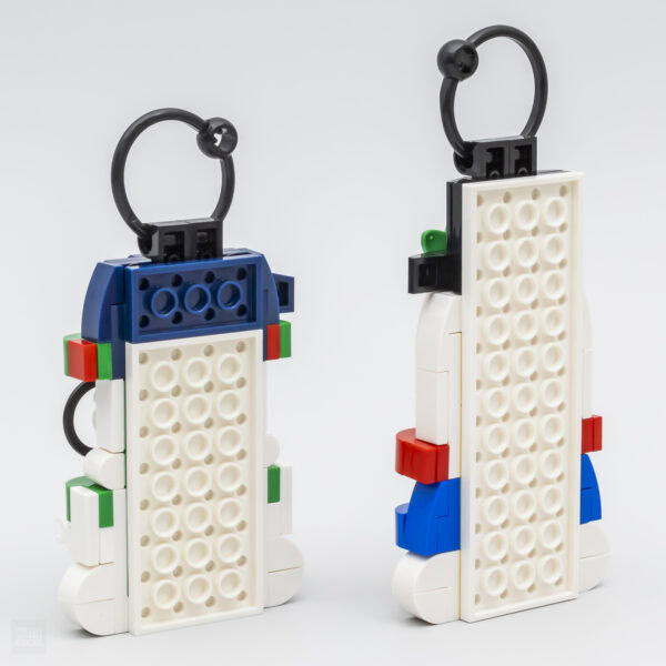On trouve en effet dans l'emballage une grosse planche d'autocollants qui permet d'habiller le micro diorama placé au dos de la construction, trois plaques d'identification différentes ainsi que trois jeux complets de trois boutons pour la manette. Cette profusion de pièces supplémentaires permet à LEGO de proposer ce produit promotionnel sur tous les marchés en offrant une maquette correcte de la manette telle qu'elle était commercialisée à l'époque.