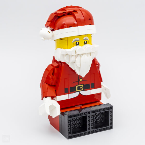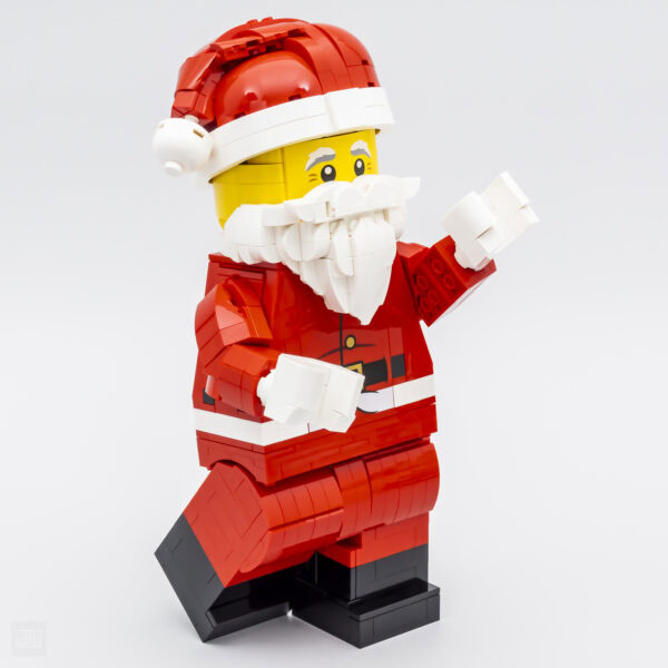 Ce Père Noël grand format a un potentiel décoratif évident malgré sa mobilité limitée. Il faudra cependant méticuleusement chercher le point d'équilibre de la construction pour lui faire prendre une pose moins statique que celles imaginées par LEGO qui se résument à présenter le personnage debout ou assis.