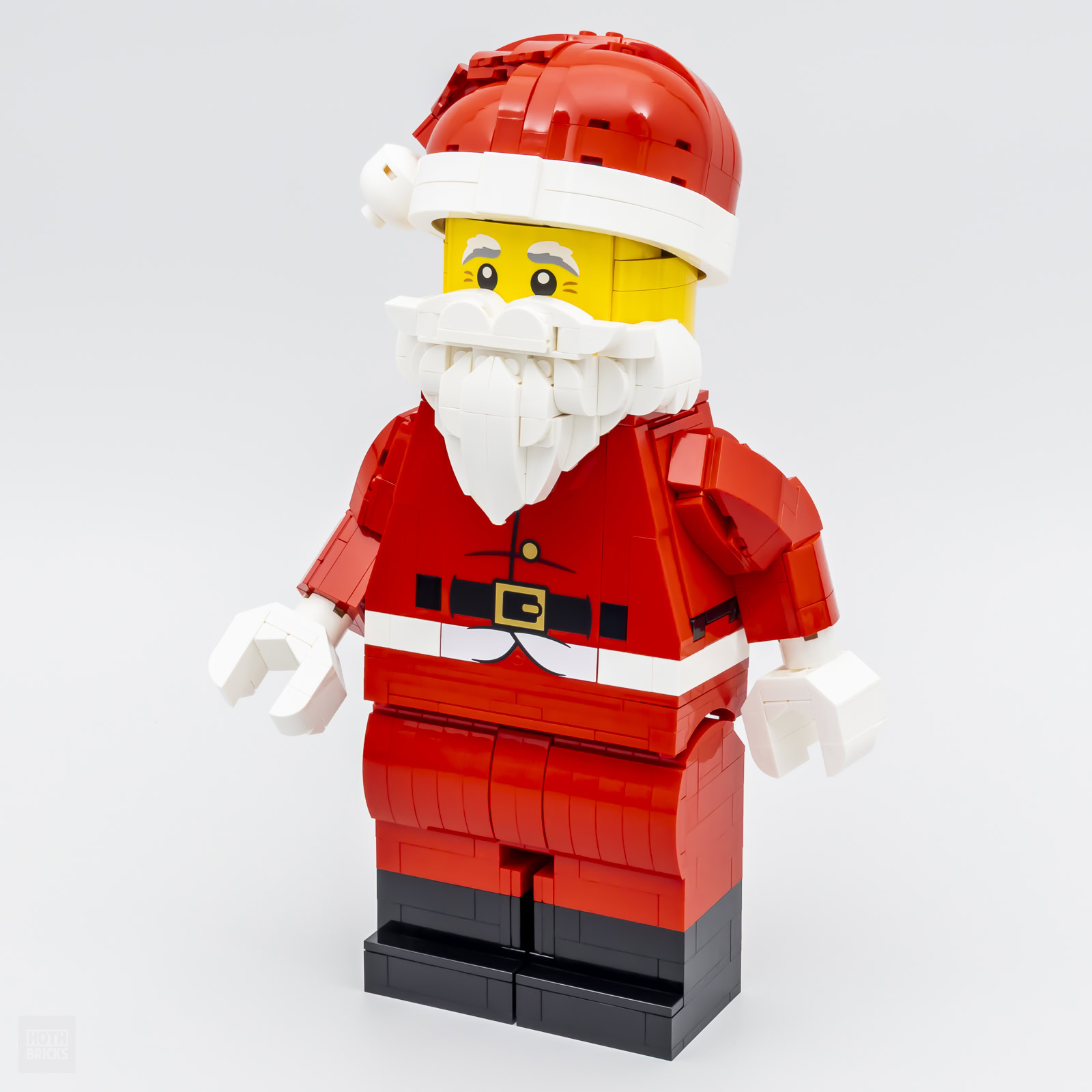 Vous le savez sans doute déjà, cette grosse figurine du Père Noël est dans l'esprit de celles des sets 40819 Up-Scaled Racing Driver Minifigure, 40504 A Minifigure Tribute, 40649 Up-Scaled LEGO Minifigure ou encore LEGO Harry Potter 76393 Harry Potter & Hermione Granger. Elle en reprend logiquement les techniques et le principe de construction avec les avantages et les inconvénients du format maintes fois évoqués par le passé.