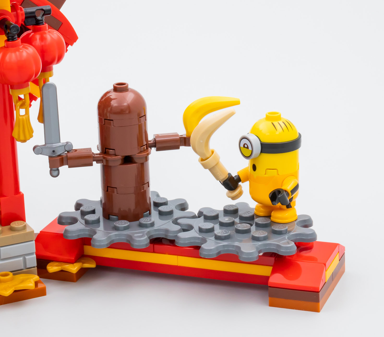 On s'amusera aussi un peu avec le mannequin d'entraînement qu'il est possible d'affronter en actionnant manuellement l'une des deux roues crantées placées à la droite du temple. Enfin, LEGO fournit un dragon qui permet de fêter comme il se doit le Nouvel an Chinois. Les quatre stickers du set à base d'écailles prennent place sur les flancs de la créature.