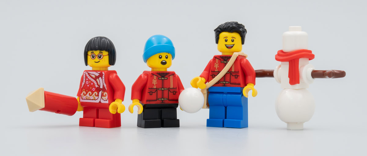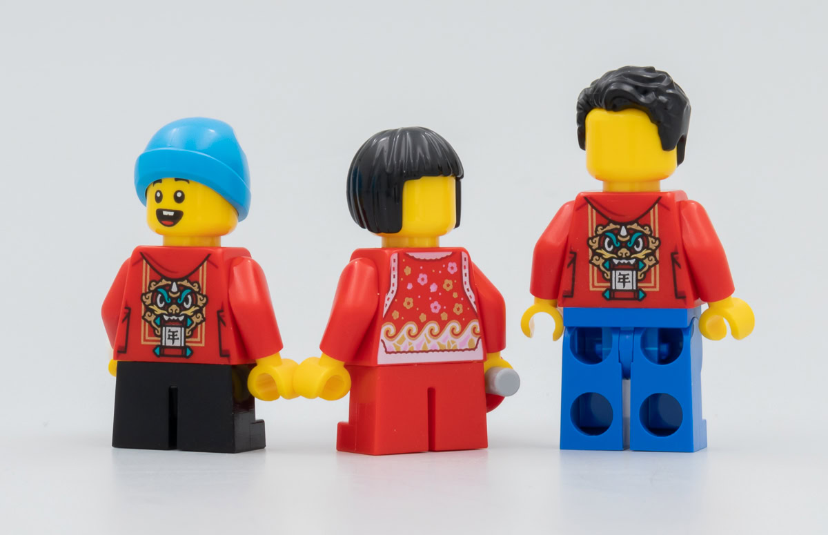 La dotation en minifigs est elle aussi très intéressante car elle permet d'obtenir une poignée de personnages modernes en "civil" sans costumes ou déguisements traditionnels. C'est toujours ça de pris pour un diorama citadin dans lequel ce parc trouvera facilement sa place, le set est conçu pour ça et il s'agit de le vendre à des fans d'aujourd'hui soucieux de trouver un produit qui incarne certaines des traditions les plus ancestrales de la culture chinoise mais qui permet aussi de mettre en scène des familles actuelles.