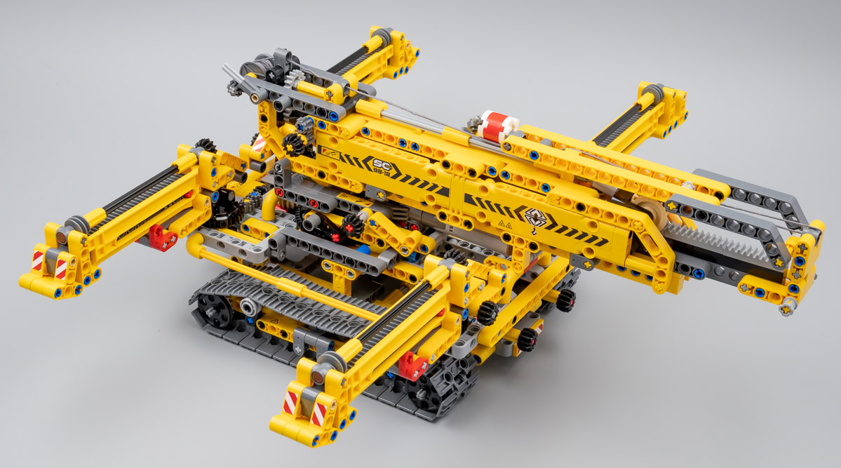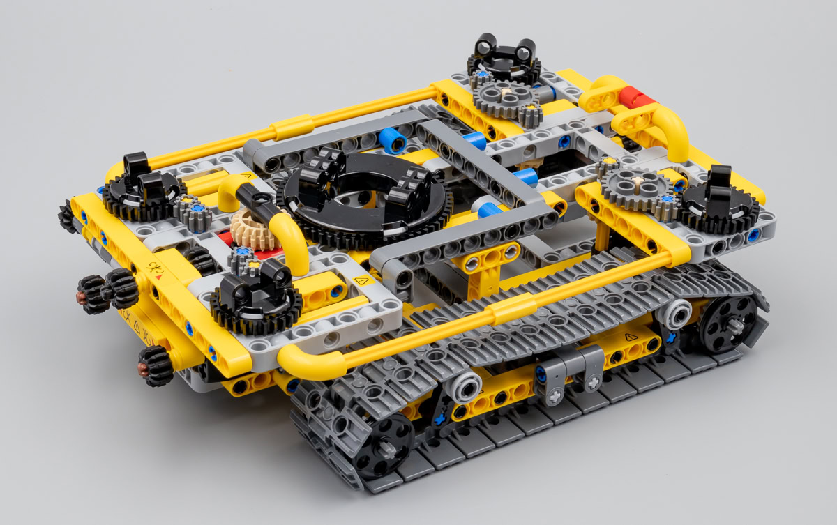 L'assemblage est relativement aisé avec un livret d'instructions très explicite qui détaille chacune des 274 étapes de montage au pin près. On commence par le socle mobile de la grue avec la mise en place des différents éléments rotatifs qui permettront au bras et aux quatre stabilisateurs d'entrer en action. L'habillage de la base de la grue est assez sommaire mais c'est le prix à payer pour pouvoir observer le fonctionnement des différents sous-ensembles mécaniques. À ce stade, vous avez encore le choix entre continuer à assembler le set pour obtenir un engin de chantier ou laisser libre court à votre imagination et en faire un char d'assaut avec tourelle rotative...