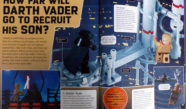 Je viens de recevoir mon exemplaire du livre LEGO Star Wars : The Dark Side accompagné de la minifig exclusive de Palpatine, et après un rapide coup d'oeil sur le contenu, quelques pages ont retenu toute mon attention :