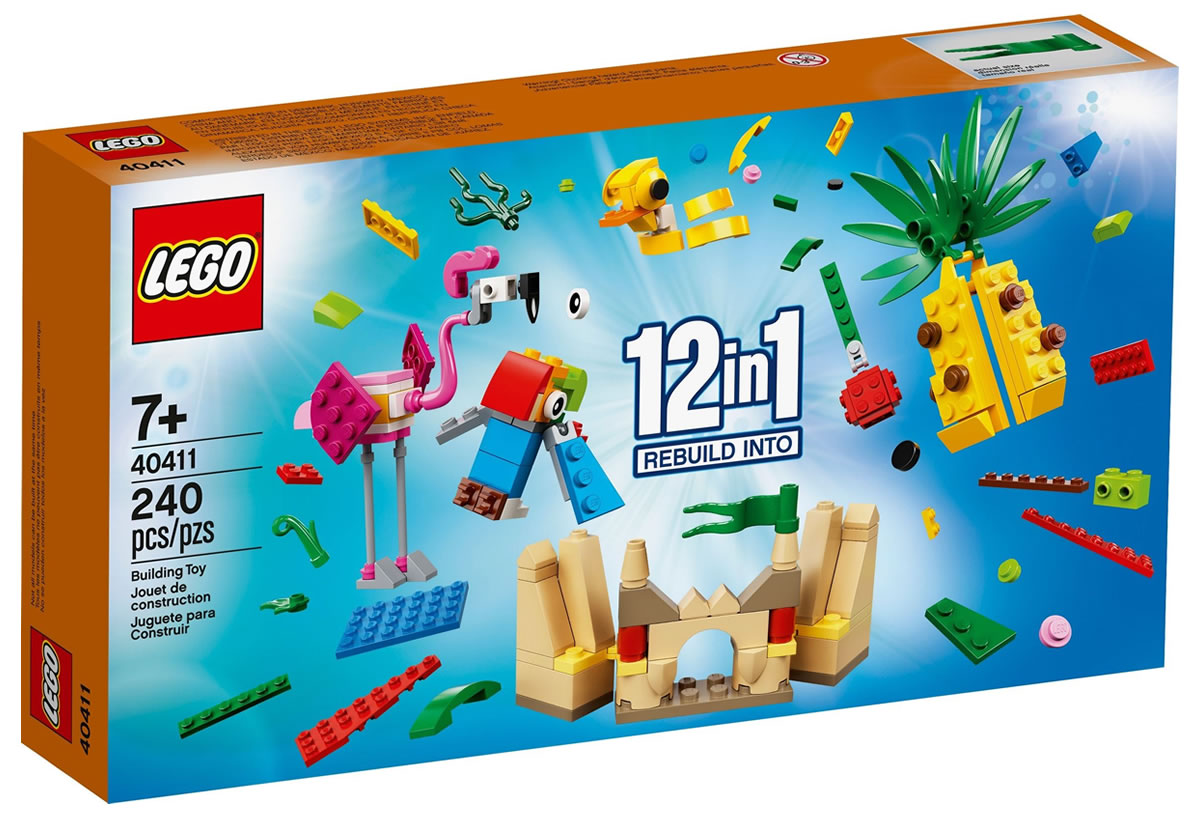 Au menu donc, le set 40411 Creative Fun 12-in-1, une boite de 240 pièces dont l'inventaire permet d'assembler 12 créations différentes, mais pas toutes en même temps (instructions disponibles à cette adresse). Outre-Atlantique, il faudra dépenser 85 $ sur la boutique officielle entre le 1er et le 26 juillet pour se faire offrir ce petit set.