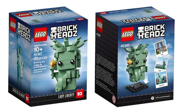 Dans cette boite de 153 pièces vendue 9.99 €, vous trouverez de quoi assembler une Statue de la Liberté au format habituellement utilisé pour les autres personnages de la gamme BrickHeadz. On aime ou on aime pas, c'est vous qui voyez.