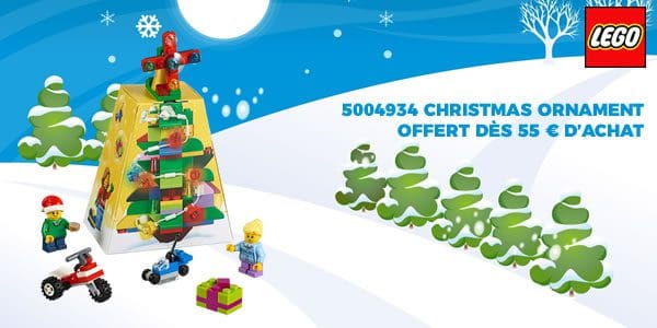 C'est parti pour une nouvelle série d'offres sur le LEGO Shop et dans les LEGO Stores avec pour les cinq premiers jours de décembre le mini-set 5004934 Christmas Ornament avec son sapin en carton et ses 66 pièces offert dès 55 € d'achat jusqu'au 5 décembre. Pas de quoi s'emballer.