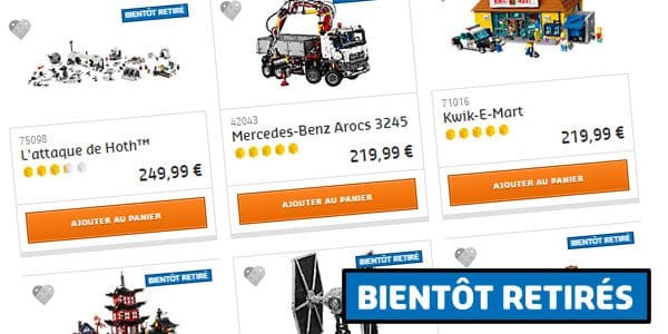 En revanche, si vous êtes en retard dans vos collections, c'est peut-être le moment de vous décider car de nombreux sets sont passés dans la catégorie "Bientôt Retiré"...