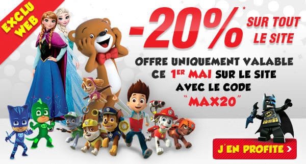 Maxi Toys profite de ce jour férié pour proposer une réduction intéressante sur l'ensemble de son offre : 20% de remise immédiate avec le code MAX20.