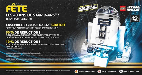 Il faudra dépenser 65 € en produits de la gamme LEGO Star Wars entre le 29 avril et le 6 mai 2017 pour l'obtenir.