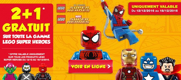 Promotion de dernière minute avec Maxi Toys qui vous permet d'obtenir 3 boites dans les gammes LEGO Super Heroes Marvel et DC Comics en n'en payant que deux.