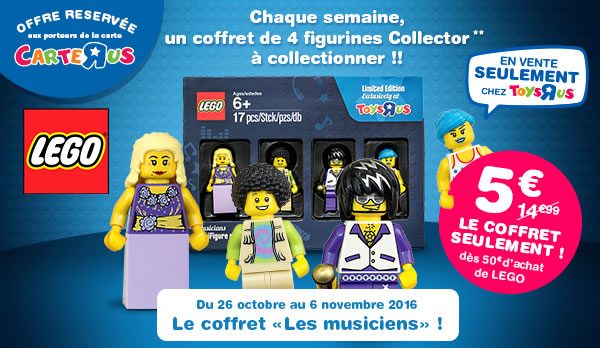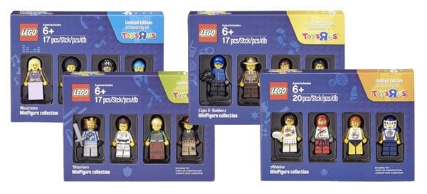 Les quatre boites thématiques vendues ou offertes exclusivement par Toys R Us : les musiciens (5004421), les guerriers (5004422), les athlètes (5004423) et les policiers/voleurs (5004424) seront disponibles en France dès le 26 octobre.