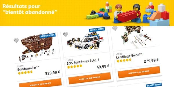 Bref, la rubrique "Bientôt retiré" du LEGO Shop, qui aurait pu s'appeler "Achetez vite" ou "Vous aurez bientôt trop attendu" contient actuellement 8 références qui ne seront donc prochainement plus vendues par LEGO sur sa boutique officielle. LEGO ne daigne d'ailleurs pas fournir de date précise pour le retrait de ces références :